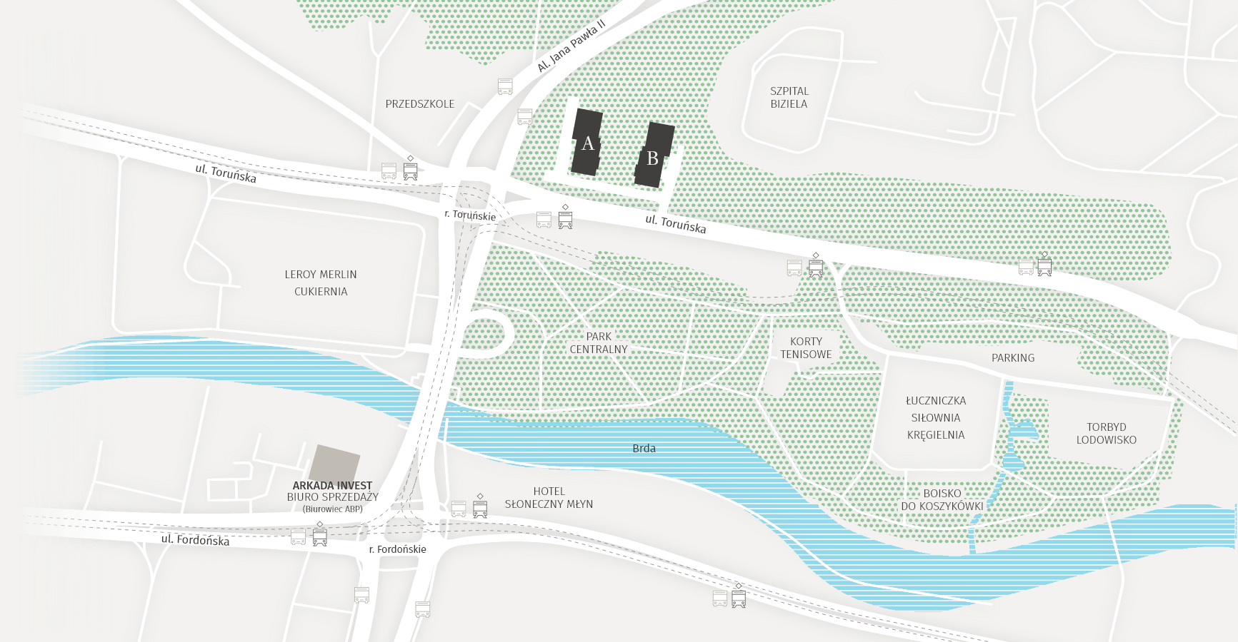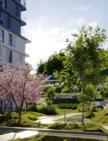 Każdy apartament posiada wykończoną loggię lub taras, które stają się prywatną przestrzenią relaksu. Niezależnie od piętra czy kierunku, w którym skierujesz wzrok, możesz podziwiać kojący widok – na zieleń, spokojną Brdę lub pulsujące życiem miasto.