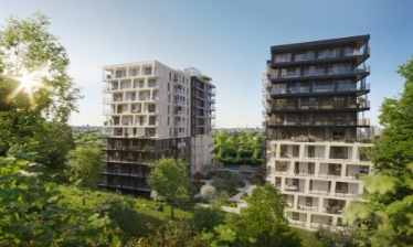 Już na pierwszy rzut oka dostrzegasz dwa eleganckie budynki połączone zielenią.