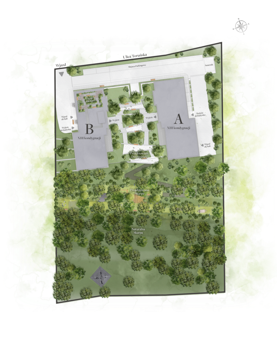 Nowa inwestycja jest realizowana przy ul. Toruńskiej 136 w Bydgoszczy, u stóp zielonej skarpy Wzgórza Wolności.