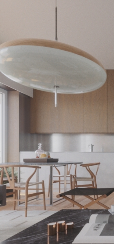 Tu każdy element ma znaczenie. Szlachetne, ponadczasowe materiały – szkło, kamień, drewno i metal – nadają inwestycji elegancki charakter, zapewniając jednocześnie trwałość wykończenia.